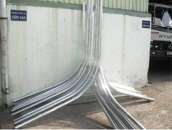 Cần đèn sau khi được sản xuất được làm sạch và được mạ nhúng kẽm nóng theo tiêu chuẩn ASTM A123
