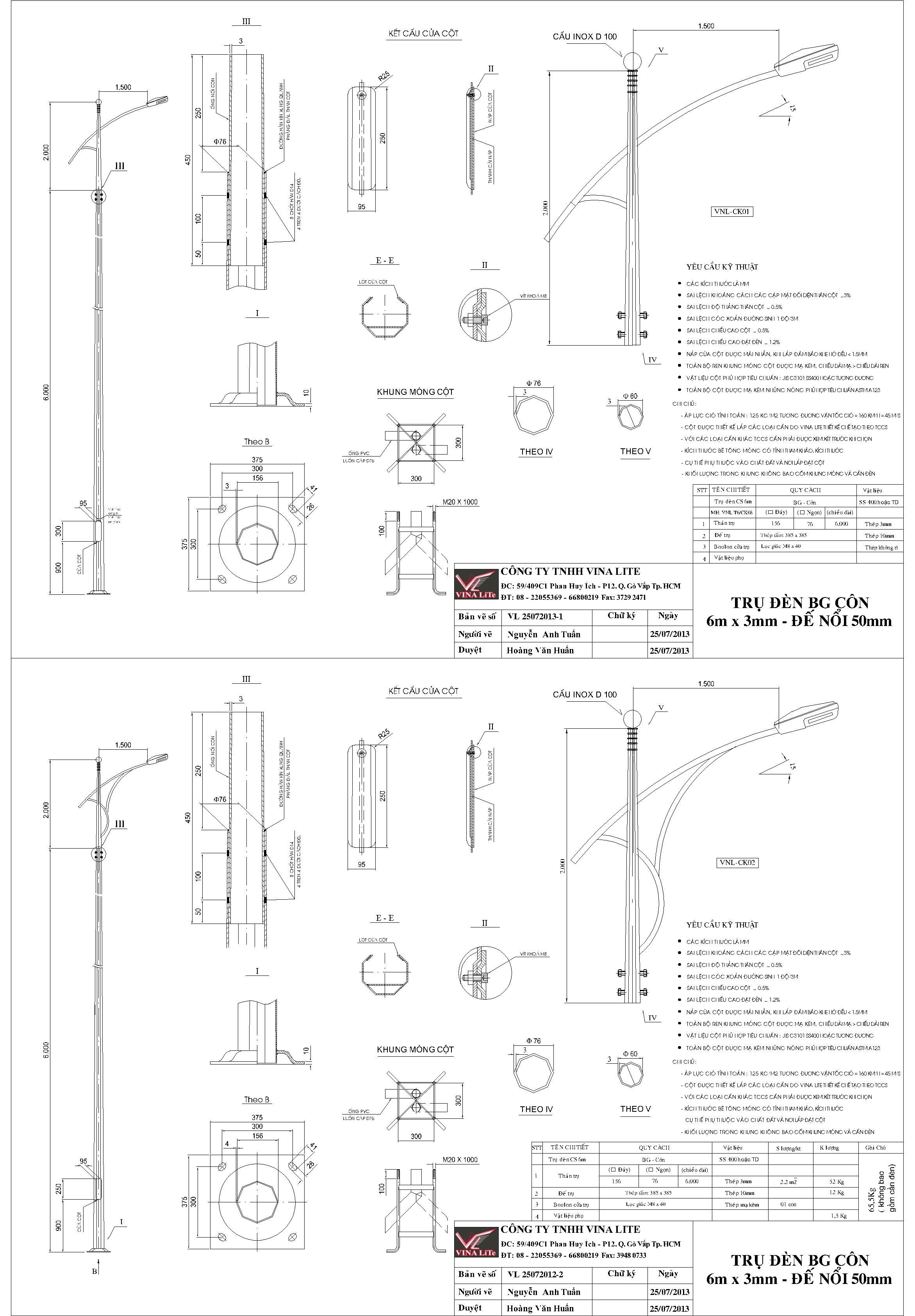 VINA LiTe sản xuất trụ đèn với nhiều kiểu dáng hiện đại hấp dẫn đảm bảo sự hài lòng từ quý khách hàng. Nếu bạn đã có bản vẽ hãy chuyển nó cho chúng tôi. Hoặc bạn có ý tưởng về thiết kế trụ đèn hãy trao đổi với chúng tôi. Chúng tôi sẽ làm bạn thỏa mãn với những thiết kế ấn tượng của mình dành cho bạn.